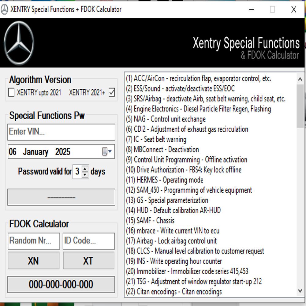 Xentry Special Function Password calculator